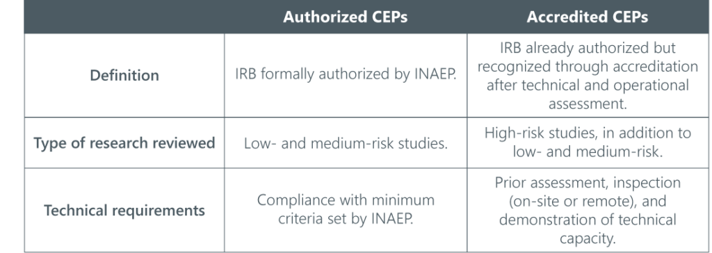 Meanwhile, the rules of the National Health Council that do not conflict with the Law or the Decree remain valid. In addition, CEPs already accredited and certified under the current system maintain this status until future evaluation by INAEP.